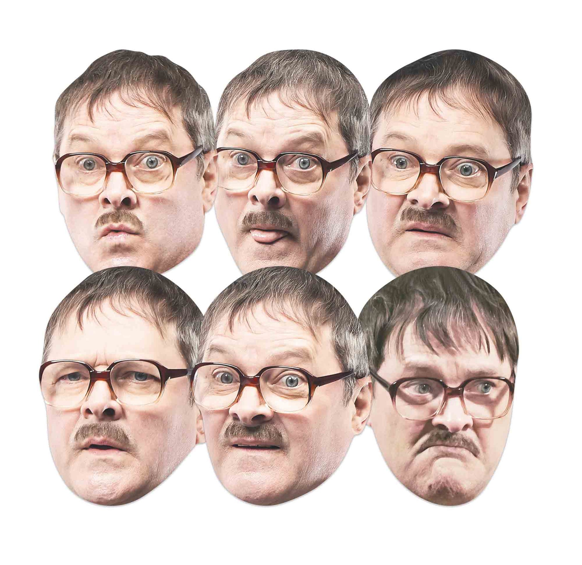 Become everyone's favourite awkward neighbour with this hilarious six-pack of Jim masks from Friday Night Dinner! Featuring a range of classic expressions – happy, sad, doubtful, shocked, nervous, and joyous – each mask captures Jim (played by Mark Heap) in peak awkwardness. With tabs and elastic included, they’re perfect for parties, stag dos, or just being Jim himself.