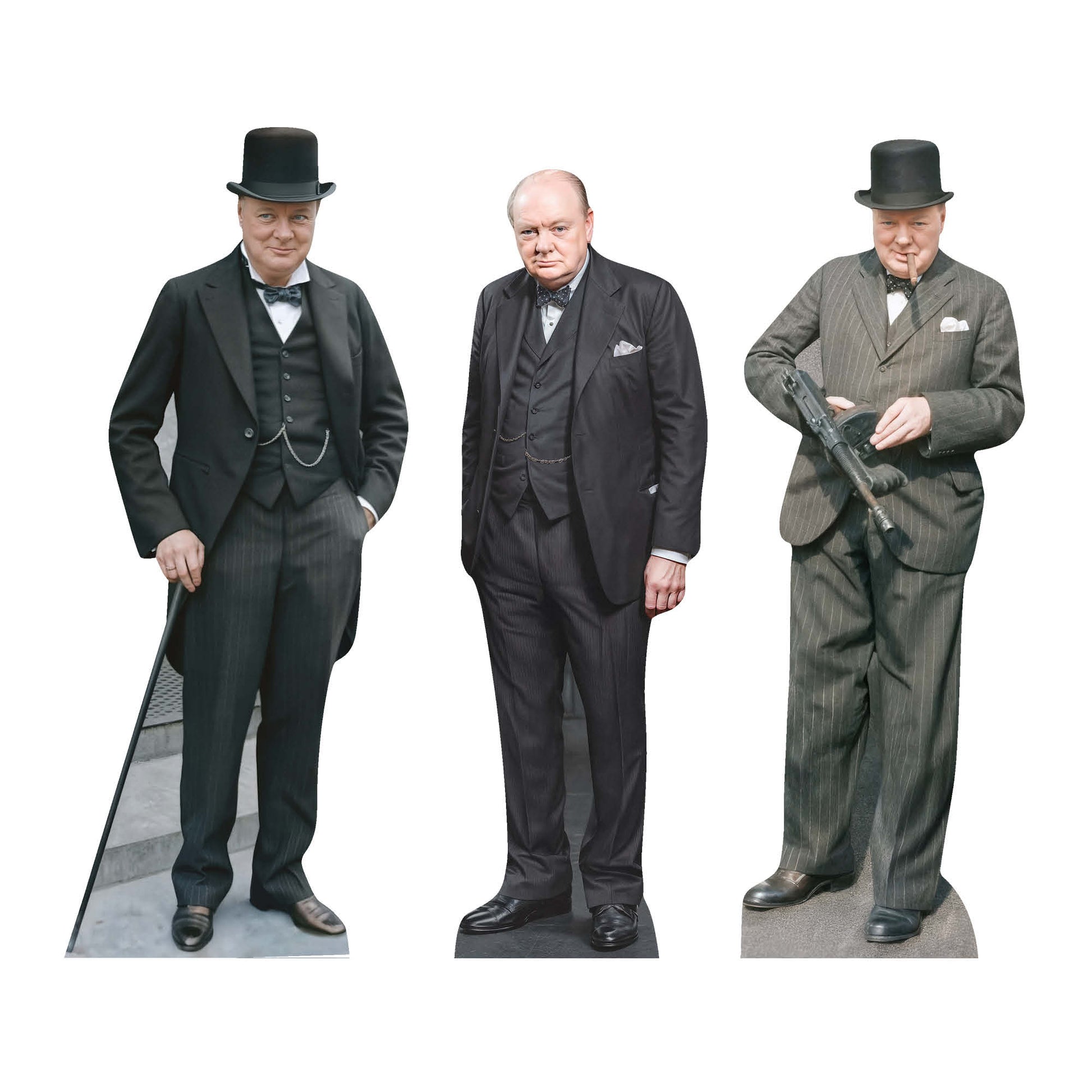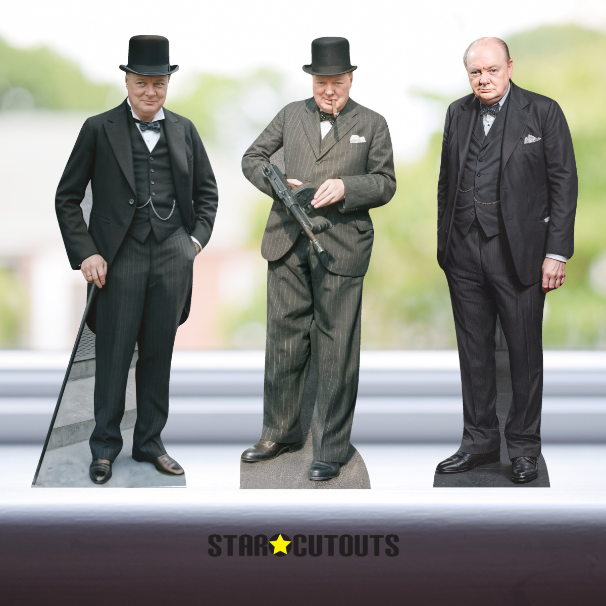 Celebrate Britain’s iconic wartime leader with this fantastic set of three small cardboard cutouts, perfect for shelves, tables, or events.