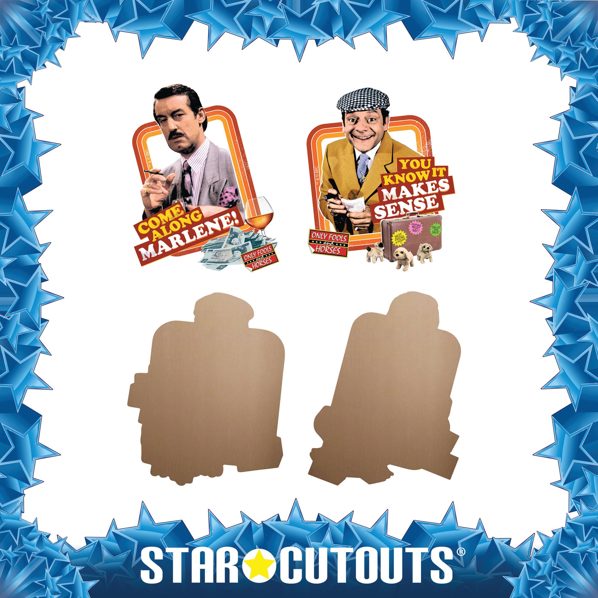 Celebrate the timeless charm of Only Fools and Horses with this brilliant pair of wall décor cardboard cutouts, featuring two unforgettable moments from the show.